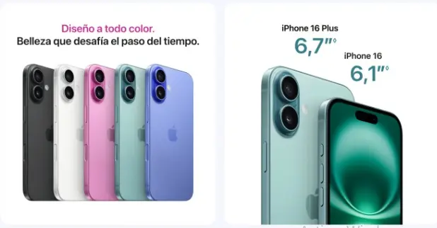 Hasta 27 horas de reproducción de video en el iPhone 16 Plus y hasta 22 horas de reproducción de video en el iPhone 16.